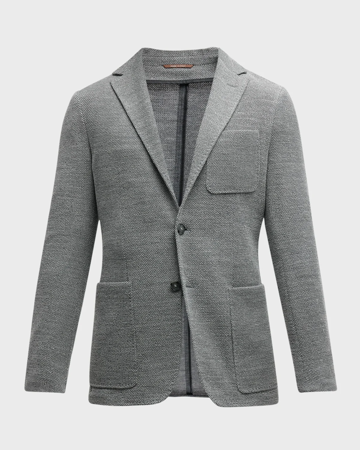 - Canali jacket in textured wool - Notched lapels; two-button front - Long sleeves - Chest and hip patch pockets - Inner ticket pocket - Double-vented back - Wool - Unlined - Dry clean - Made in Italy - Model is 6'1"/185cm.