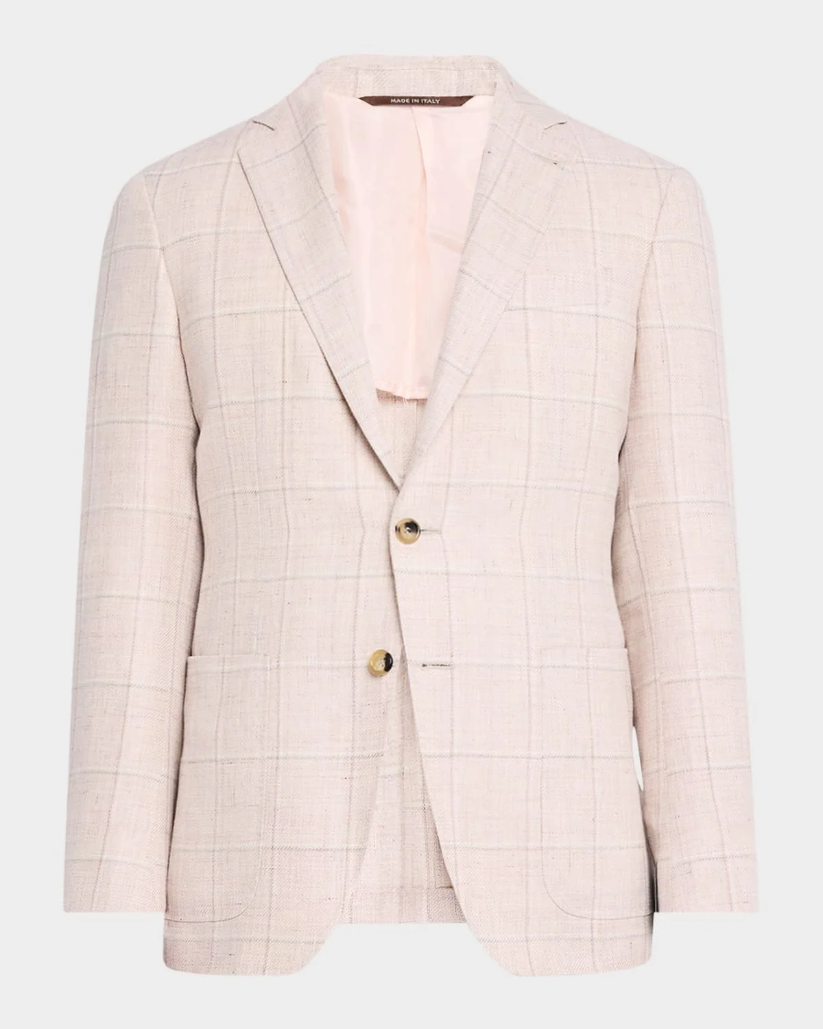 - Canali sport coat in windowpane check - Notch lapels; buttonhole at left lapel - Two-button closure - Chest welt pocket - Hip patch pockets - Unfinished sleeves - Double-vented back - Wool/silk - Lining: Rayon - Dry clean - Made in Italy