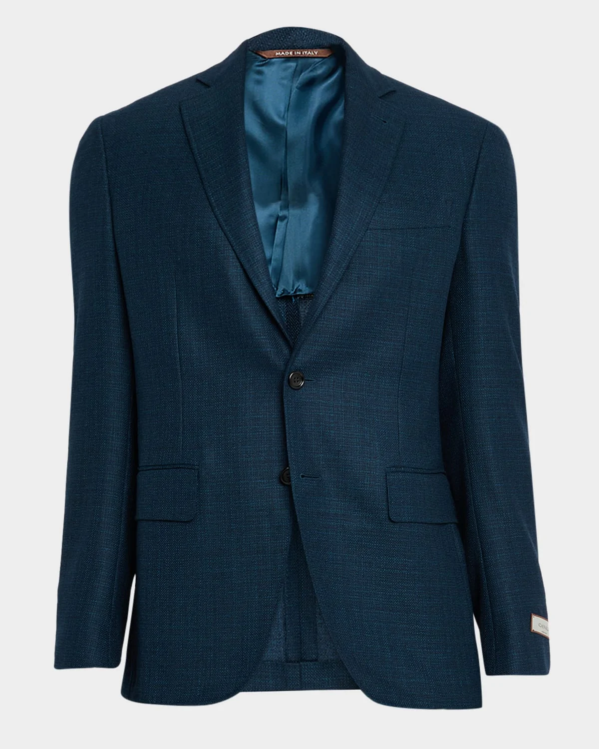 - Canali wool textured sport coat is lightweight and wraps the body without constricting it, combining elegance and comfort - Notch lapels - Single-breasted front - Chest welt pocket - Hip flap pockets - Internal breast pocket - Double-vented back - Wool - Lining: Cupro - Dry clean - Made in Italy