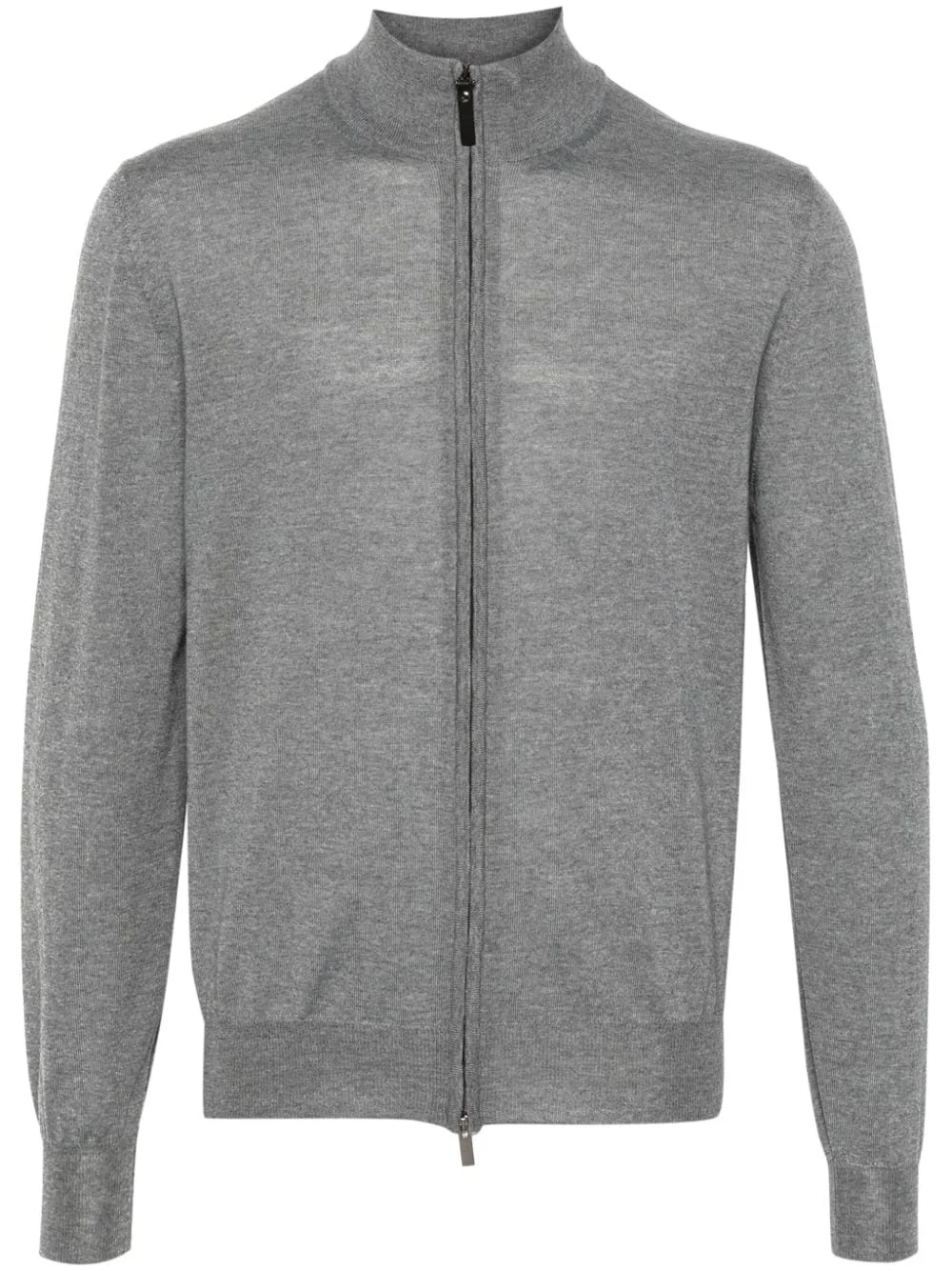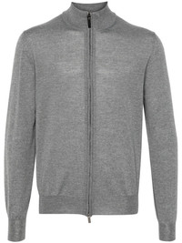 merino wool cardigan Highlights - Heather grey - Merino wool - Fine knit - Melange effect - Front two-way zip fastening - Ribbed trim - High neck - Long sleeves - Straight hem Made in Italy Composition Merino 100% SIZE & FIT Model measurements Height 6 ft 1 in(1.85 m) Bust/Chest 35.82 in(91 cm) Hips 37.79 in(96 cm) Waist 29.13 in(74 cm) Measurement CHEST 44.88 in(114 cm) Shoulder Width 17.32 in(44 cm) FittingInformation Designed for a slim fit, offering a comfortable fit that sits just away from the body The ribbed hem offers a close, comfortable fit Made with a lightweight knit, this piece offers some stretch Washing instructions Hand Wash
