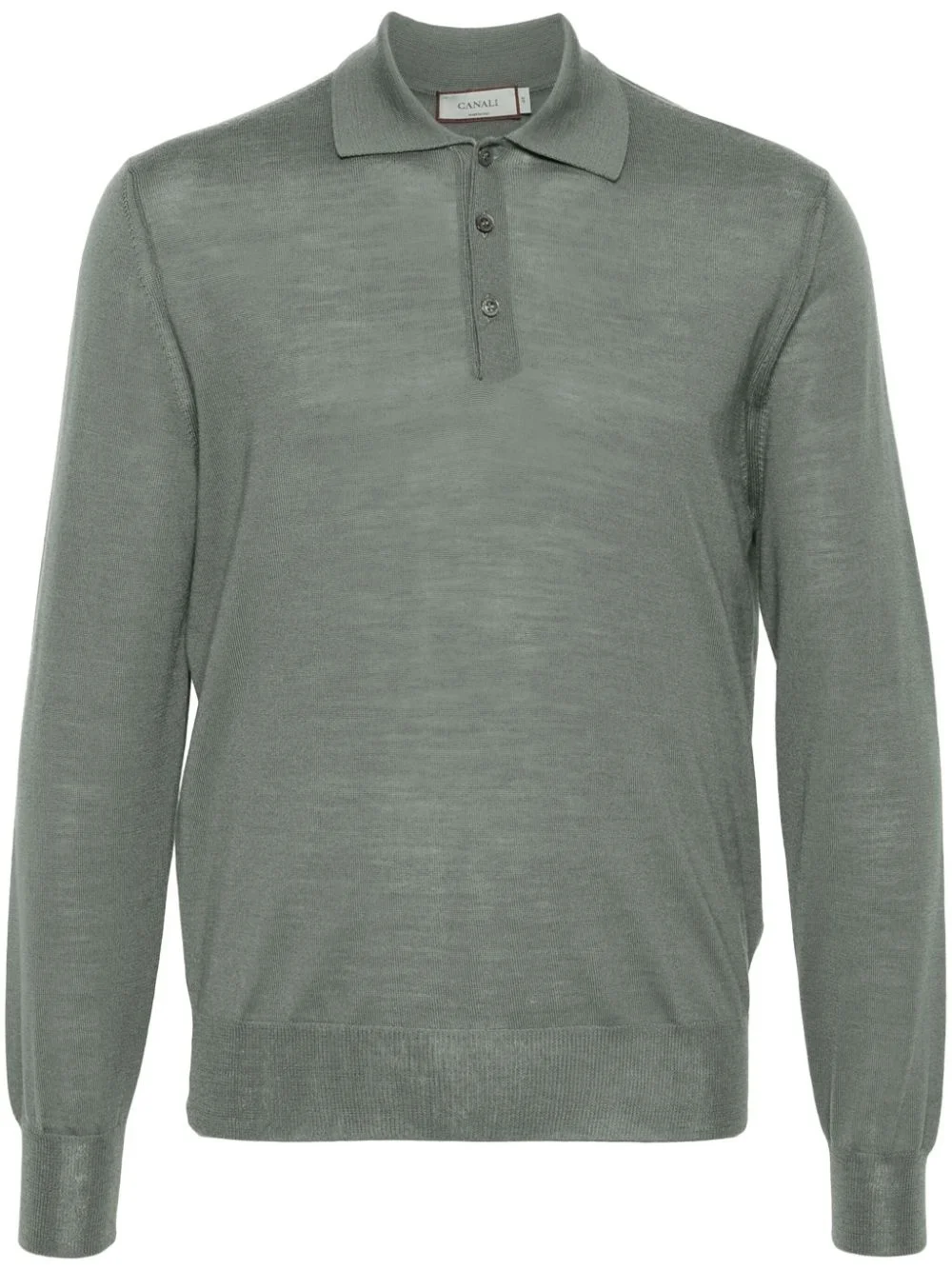 merino-wool polo shirt Highlights - Moss green - Merino wool - Fine knit - Front button placket - Ribbed trim - Polo collar - Long sleeves - Straight hem Made in Italy Composition Merino 100% SIZE & FIT Model measurements Height 6 ft 1 in(1.85 m) Bust/Chest 35.82 in(91 cm) Hips 37.79 in(96 cm) Waist 29.13 in(74 cm) FittingInformation The ribbed hem offers a close, comfortable fit Made with a lightweight knit, this piece offers some stretch Washing instructions Hand Wash