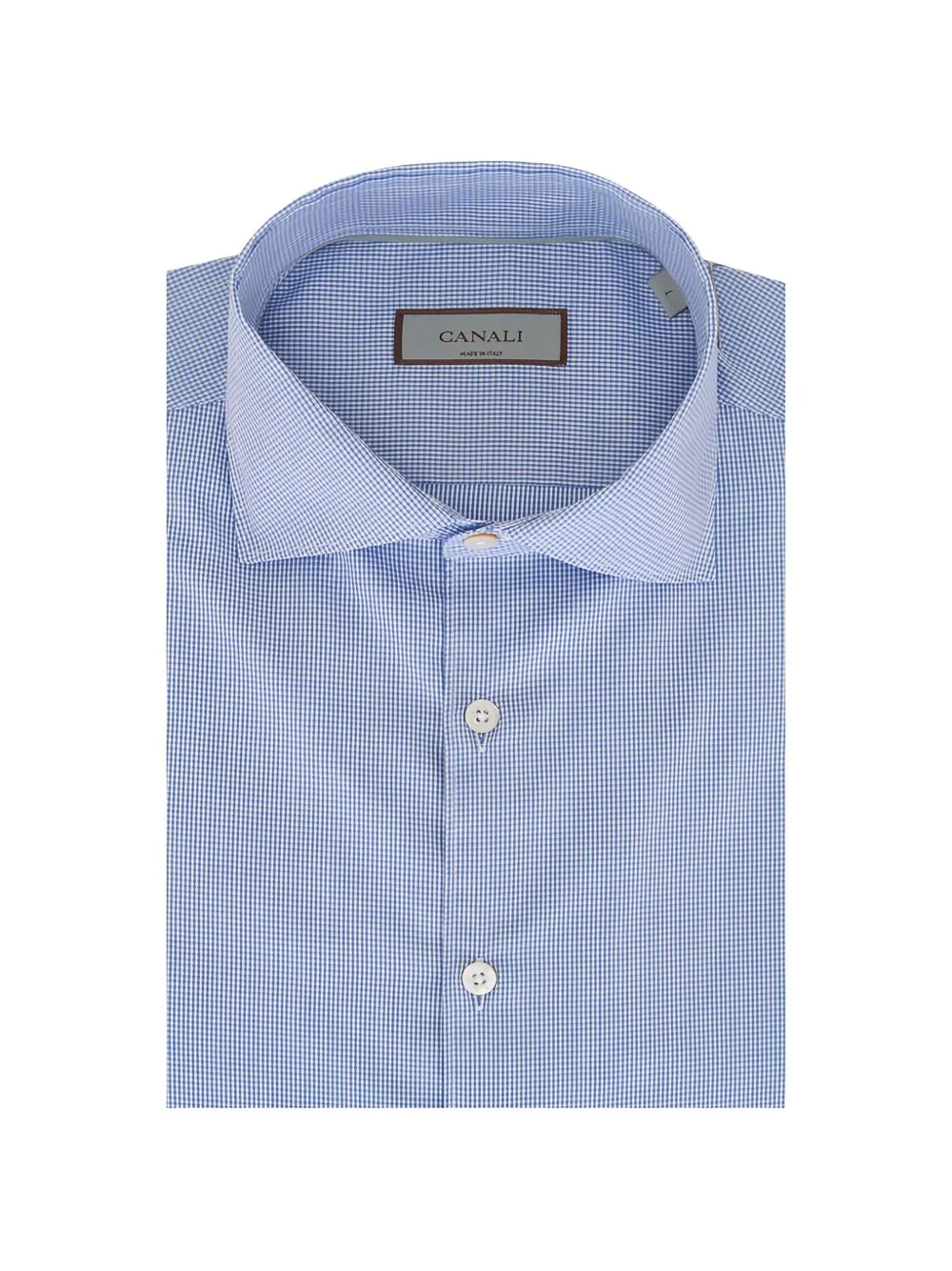 micro-checked button-up shirt Highlights - Blue - Check pattern - Button fastening - Long sleeves - Classic collar - Buttoned cuffs Made in United States Composition Cotton 100% Washing instructions Read Manufacturer Guidelines