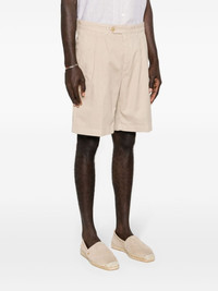 mid-rise chino shorts Highlights - Sand beige - Cotton blend - Twill weave - Pleat detailing - Mid-rise - Belt loops - Concealed fly and button fastening - Two diagonal pockets to the sides - Two rear flap pockets - Straight leg - Above-knee length Made in Italy Composition Cotton 98%, Elastane 2% SIZE & FIT Model measurements Height 6 ft 2 in(1.87 m) Bust/Chest 36.41 in(92.5 cm) Hips 37 in(94 cm) Waist 29.52 in(75 cm) FittingInformation Designed for relaxed fit, offering a comfortable loose fit over the leg Made from a midweight stretch fabric, this piece offers elasticity and flexibility when worn This piece fits true to size – take your usual size