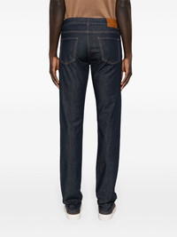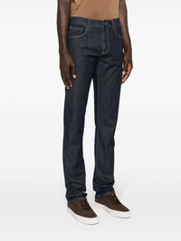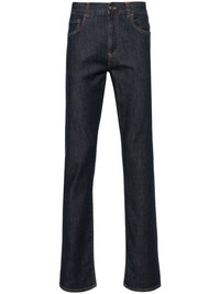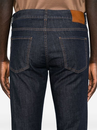 slim-cut denim pants Highlights - Indigo blue - Stretch-cotton - Denim - Contrast stitching - Logo patch to the rear - Straight leg - Mid-rise - Concealed fly and button fastening - Belt loops - Classic five pockets - Straight hem Made in Italy Composition Cotton 99%, Elastane 1% SIZE & FIT Model measurements Height 6 ft 2 in(1.87 m) Bust/Chest 36.41 in(92.5 cm) Hips 37 in(94 cm) Waist 29.52 in(75 cm) FittingInformation Designed for a slim fit, these jeans offer a comfortable fit that sits just away from the leg Constructed from stretch denim, this piece offers a stretch fit with durability This piece fits true to size – take your usual size