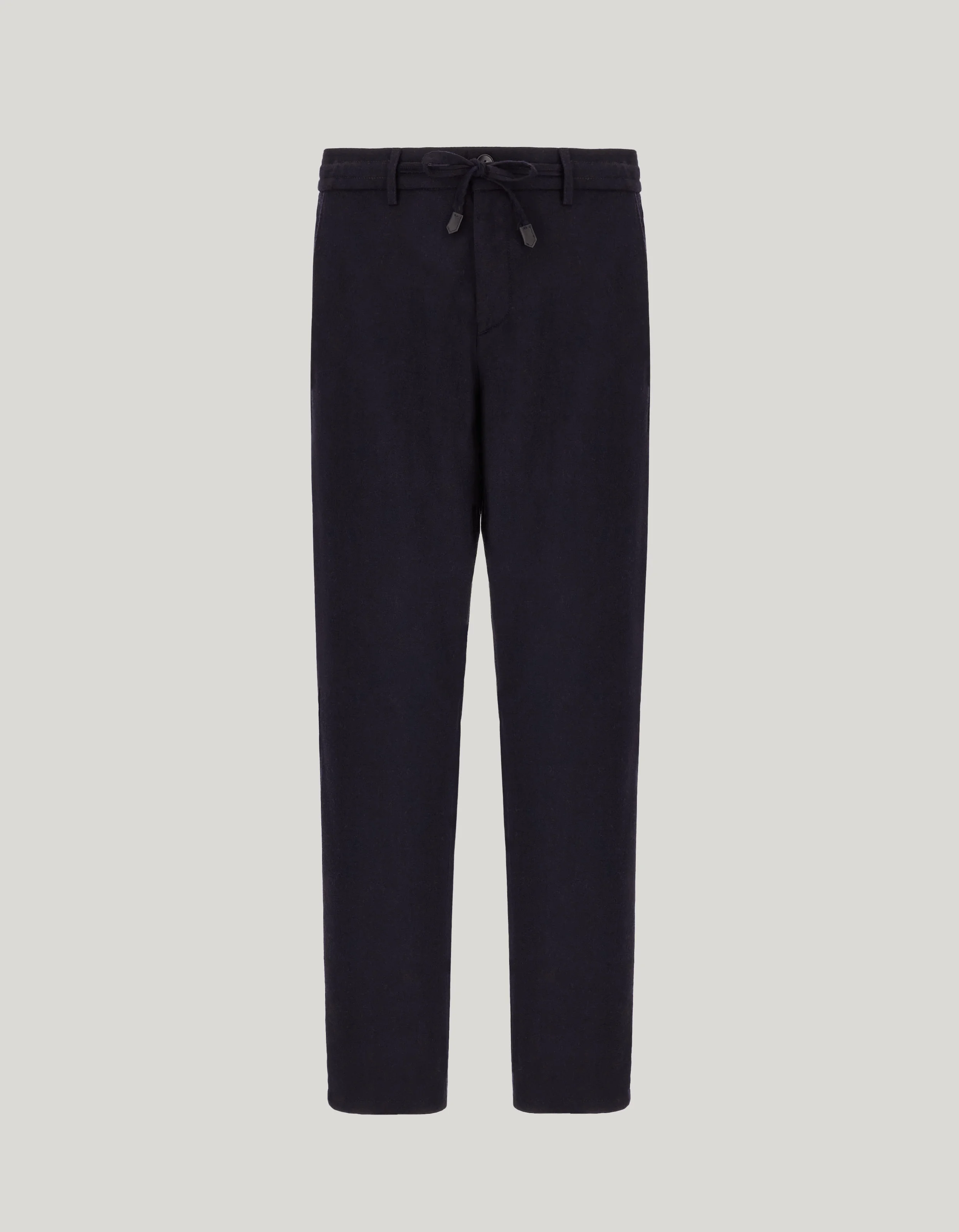 Chinos with drawstring and a regular fit, made of Impeccabile pure wool flannel: a high-quality fabric whose ability to resist wrinkling gives a consistently flawless appearance. The practical closure with leather details and elastic on the sides offer a comfortable fit, while the quality of the fabric ensures durability and pleasant wear. A versatile garment perfect for effortlessly tackling every day. FABRICS AND CRAFTSMANSHIP - Drawstring chinos with elastic at the sides - Regular fit - Central fastening with button and drawstring with leather arrow ends - Double welt back pockets with exposed button - Hem 19 cm - IMPECCABILE washable flannel - 100% wool - Made in Italy CARE Machine wash max 30° - delicate cycle Do not bleach Normal steam or dry iron on low (110°) Gentle dry clean with perchlorethylene Do not tumble dry FIT Regular fit The model is wearing a size 48 The model measures: Height: 192 cm (75.6 in) Chest: 93 cm (36.6 in) Waist: 67 cm (26.4 in) Hips: 88 cm (34.7 in)