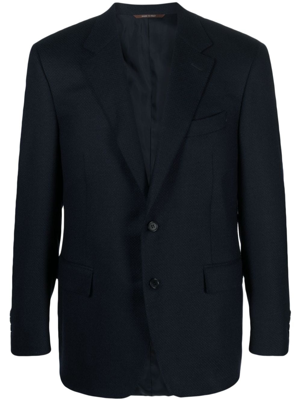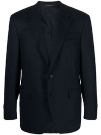 notched-lapel single-breasted blazer Highlights - Navy blue - Wool blend - Notched lapels - Front button fastening - Long sleeves - Buttoned cuffs - Chest welt pocket - Two front patch pockets - Straight hem Made in Italy Composition Outer: Wool 97%, Elastane 3% Lining: Cupro 100% SIZE & FIT Model measurements Height 6 ft 0 in(1.84 m) Bust/Chest 35.82 in(91 cm) Hips 37 in(94 cm) Waist 28.34 in(72 cm) FittingInformation Designed for a slim fit, offering a comfortable fit that sits just away from the body The internal shoulder pads offer a structured shape Made from a midweight fabric This piece fits true to size – take your usual size Washing instructions Dry Clean Only