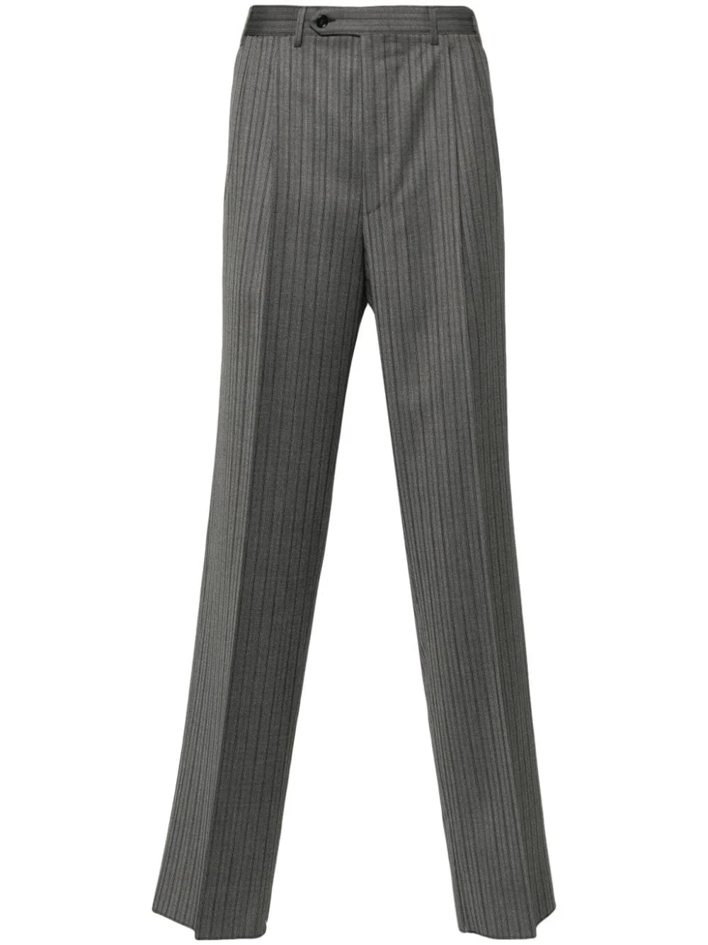 pinstripe-pattern wool trousers Highlights - Grey - Wool - Pinstripe pattern - Pleat detailing - Button fly fastening - Belt loops - Slip pockets to the sides - Two rear welt pockets - Straight leg Made in Italy Composition Outer: Wool 100% SIZE & FIT Model measurements Height 6 ft 2 in(1.87 m) Bust/Chest 33.46 in(85 cm) Hips 36.22 in(92 cm) Waist 29.52 in(75 cm) FittingInformation Designed for a slim fit, offering a comfortable fit that sits just away from the leg The unfinished hems allow for the length to be altered Made from a midweight non-stretch fabric This piece fits true to size – take your usual size Washing instructions Dry Clean Only