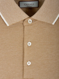 pique contrast-trim polo shirt Highlights - Camel - Pique knit - Contrast trim - Short sleeves - Button fastening Imported Composition Cotton 100% Washing instructions Read Manufacturer Guidelines