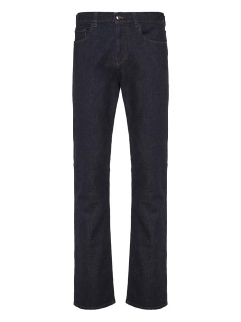 pocket jeans Highlights - Dark blue - Topstitching - Chest pockets - Front pockets - Button fastening - Leather logo patch Made in Italy Composition Cotton 93%, Cashmere 6%, Spandex/Elastane 1% Washing instructions Machine Wash