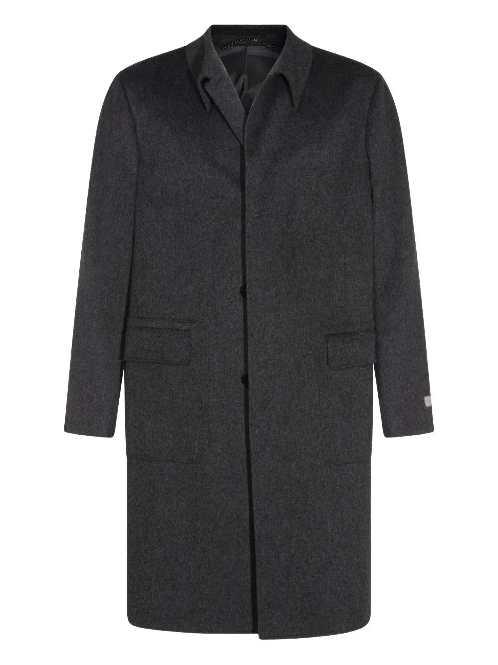 pocket wool coat Highlights - Charcoal - Wool composition - Front button fastening - Long sleeves - Front flap pockets - Collared Made in Italy Composition Wool 100% Washing instructions Read Manufacturer Guidelines
