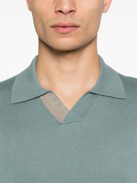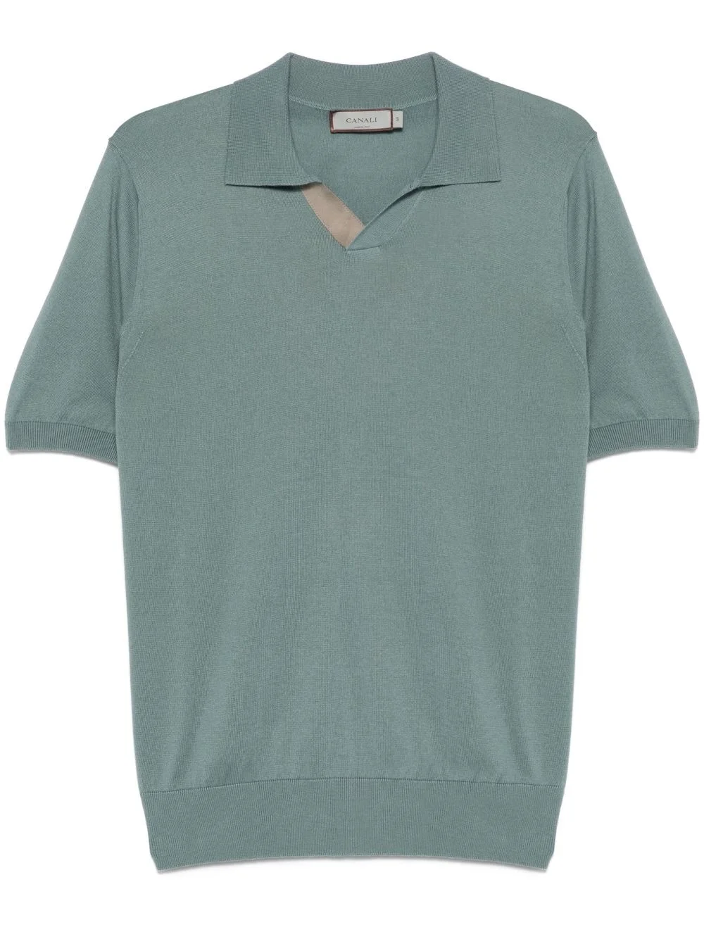 polo-collar T-shirt Highlights - Ocean blue - Split neck - Short sleeves - Ribbed cuffs and hem Made in Italy Composition Cotton 50%, Modal 50% SIZE & FIT Model measurements Height 6 ft 1 in(1.85 m) Bust/Chest 35.82 in(91 cm) Hips 37.79 in(96 cm) Waist 29.13 in(74 cm) FittingInformation Designed for a relaxed fit, this piece allows for comfort and movement when worn Made with a lightweight knit, this piece offers some stretch Washing instructions Hand Wash