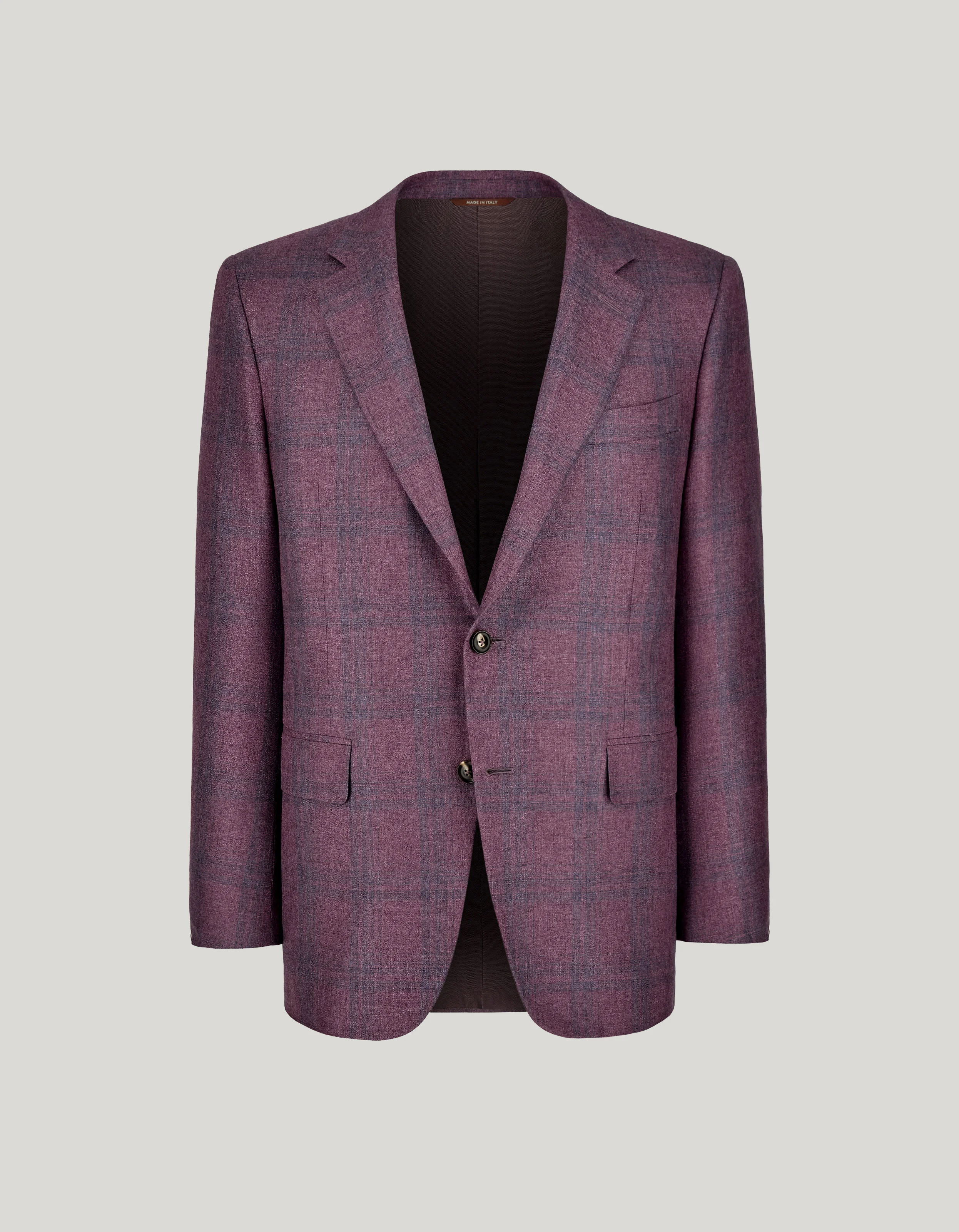 The overcheck pattern, in a delicate dual-tone colour scheme, puts an elegant twist on this single-breasted blazer in a luxurious blend of silk and cashmere. The sleek and comfortable lines of the regular fit are combined with the refined design, complete with flap pockets, to create a sophisticated garment, ideal for modern men in search of flawless looks. FABRICS AND CRAFTSMANSHIP - Single-breasted two-button blazer - Slash pockets with flaps and a slash breast pocket - Blazer length: 75 cm in size 50 - This garment does not come with buttons or buttonholes at the end of the sleeves to allow the customer to customise the length of the sleeves - 52% silk, 48% cashmere - Made in Italy CARE Do not wash with water Do not bleach Normal steam or dry iron on low (150°) Dry clean with perchlorethylene Do not tumble dry FIT Regular Fit - Drop 6 The contemporary Venezia blazer features a regular length with well-defined shoulders, light shoulder pads, and standard lapels. The model is wearing a size 48 The model measures: Height: 190 cm Chest: 92 cm Waist: 75 cm Hips: 92 cm
