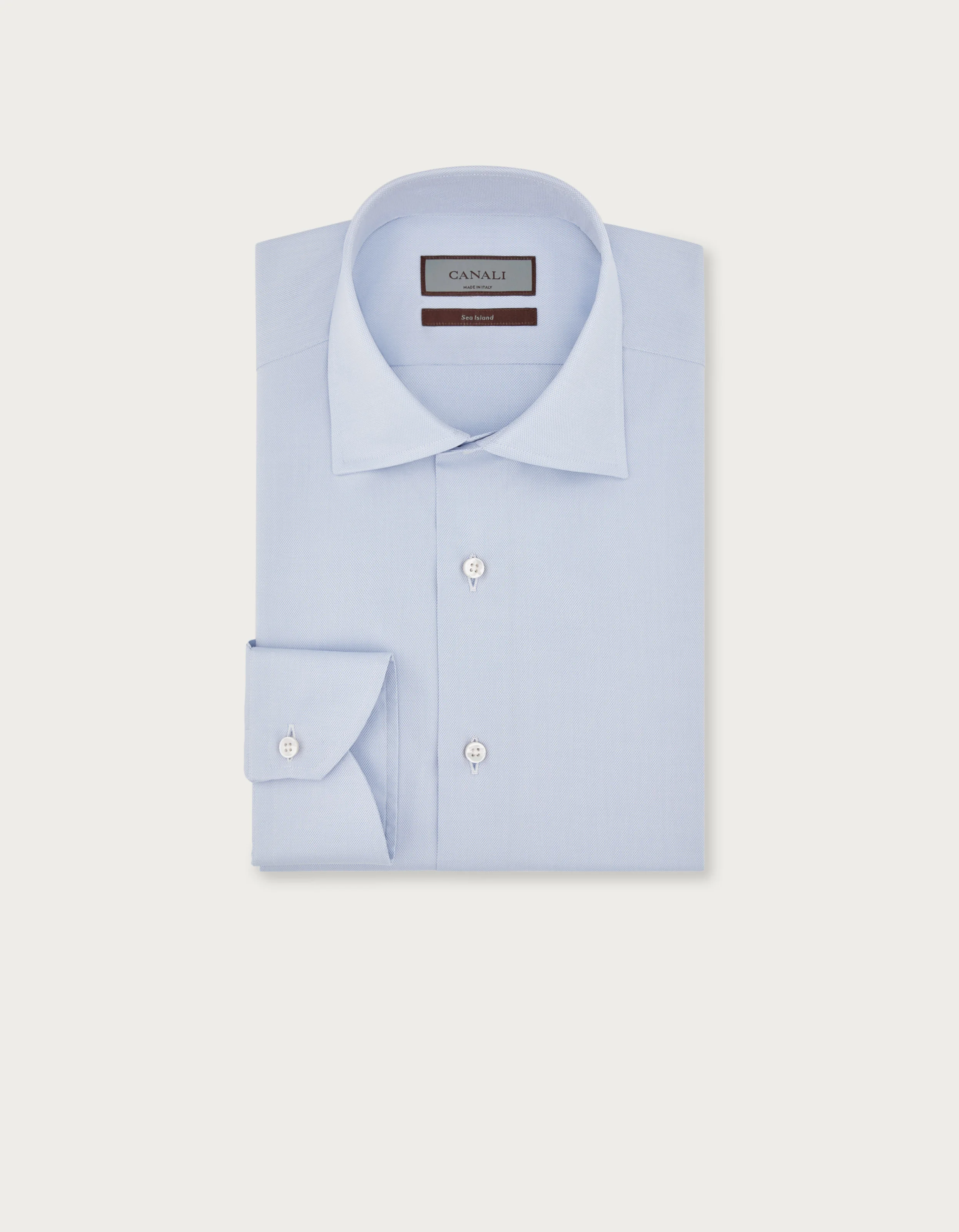 Shirt in high-quality Oxford sea island cotton with semi-spread collar and mother-of-pearl buttons. The understated construction, without any gussets or darts, showcases the essential and comfortable lines of the regular fit, while the timeless colour scheme is an expression of versatility. Designed for the man who never compromises on elegance. FABRICS AND CRAFTSMANSHIP - Formal shirt - Semi-spread collar - Collar height 4.2cm - Smooth front with no placket - Removable stays - Smooth back with no darts - Semi-rounded cuffs - Mother-of-pearl buttons - 100% sea island cotton - Made in Italy CARE Machine wash max 30° Do not bleach Normal steam or dry iron on low (110°) Do not dry clean Do not tumble dry FIT Regular Fit The model is wearing a size 48 The model measures: Height: 188 cm Chest: 94 cm Waist: 75 cm Hips: 93 cm