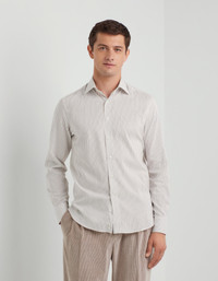 Cotton silk shirt designed to embody casual elegance with its contemporary sophistication. The delicate mix of fibers creates a fabric that combines softness and strength, while the regular fit and collar harmoniously enhance the figure. The shirt perfectly meets the needs of those seeking an elegant yet functional solution, ideal for both formal gatherings and less demanding occasions. FABRICS AND CRAFTSMANSHIP - Formal shirt - Semi-spread collar - Collar height 4.2 cm - Removable collar stiffeners - Plain back with no wrinkles - Plain front with no placket - Semi-rounded cuff - 68% Cotton 32% Silk - Made in Italy CARE Do not wash with water Do not bleach Normal steam or dry iron on low (110°) Gentle dry clean with perchlorethylene Do not tumble dry FIT Regular fit The model is wearing a size 48 The model measures: Height: 189 cm (74.4 in) Chest: 98 cm (38.6 in) Waist: 82 cm (32.3 in) Hips: 97 cm (38.2 in)
