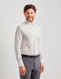 Made with the defined and comfortable lines of a regular fit, this formal cotton poplin shirt with a semi-spread collar expresses contemporary elegance. A garment with authentic taste to gracefully enhance every business look. FABRICS AND CRAFTSMANSHIP - Formal shirt - Semi-spread collar - Collar height 4.2cm - Removable stays - Smooth back with no darts - Smooth front with no box pleat - Semi-rounded cuffs - 100% cotton 140/2 - Made in Italy CARE Machine wash max 30° Do not bleach Normal steam or dry iron on low (110°) Do not dry clean Do not tumble dry FIT Regular Fit The model is wearing a size 48 The model measures: Height: 188 cm Chest: 94 cm Waist: 75 cm Hips: 93 cm