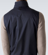 Made in Italy from technical fabric, this Canali vest boasts a reversible design. The style features a concealed zip-up front and buttoned pockets. Product Details - Material: 100% polyester - Care instructions: specialist clean - Made in Italy - Color: blue - Designer color name: 302 - Trim: 100% leather - Contains non-textile parts of animal origin - Closure: zipped front - Pockets: snap-buttoned pockets, internal pocket - Hem: elasticated - Collar: band - Item number: P01137096 Size & Fit - True to size - Straight fit - Elasticated hem - Non-stretchy fabric - Falls to the hip - Height of model is 189cm-74.5" and wears a size 50