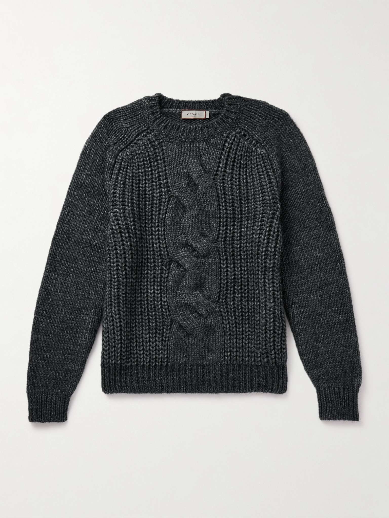 The varying textures of Canali's sweater will add dimension to your outfit, whether you wear it solo or layered over crisp shirting. Featuring touches of wool and alpaca, it's knitted with substantial cables framed by chunky ribbing at both the front and back. Size & Fit - Fits true to size. Take your normal size - Designed for a slightly loose fit - Mid-weight knit - Model is shown wearing an IT 48 - Model measures: chest 38"/ 96cm, height 6'1"/ 185cm Details & Care - Dark-grey mélange wool, acrylic and alpaca-blend - 45% wool, 30% acrylic, 25% alpaca - Hand wash or dry clean