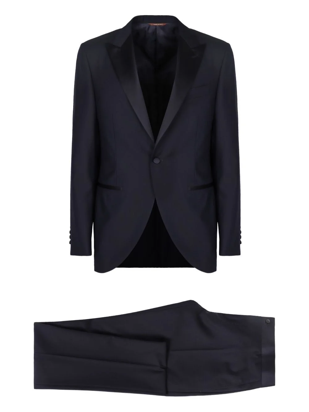 satin-lapel wool suit Highlights - Navy blue - Satin lapel collar - Welt pockets - Chest pocket Made in Italy Composition Wool 100% Washing instructions Read Manufacturer Guidelines