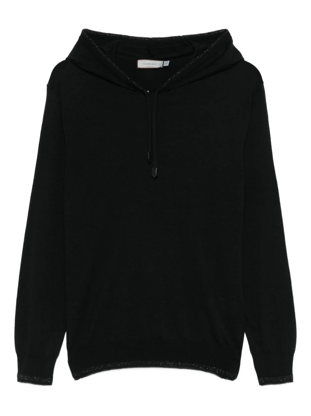 sequin-embellished hoodie Highlights - Black - Sequin embellishment - Drawstring hood - Long sleeves - Ribbed cuffs Made in Italy Composition Merino 97%, Viscose 1%, Silk 1%, Polyamide 1% SIZE & FIT Model measurements Height 6 ft 1 in(1.85 m) Bust/Chest 38.58 in(98 cm) Hips 37 in(94 cm) Waist 30.31 in(77 cm) Washing instructions Hand Wash