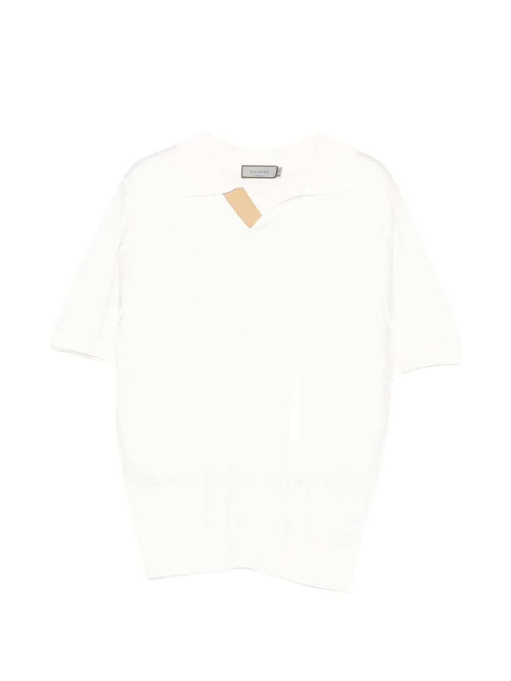 short-sleeve open collar polo shirt Highlights - White - Short-sleeved - Open-collar polo shirt - Ribbed collar, hem and cuffs Made in Italy Composition Cotton 50%, Modal 50% Washing instructions Dry Clean Only