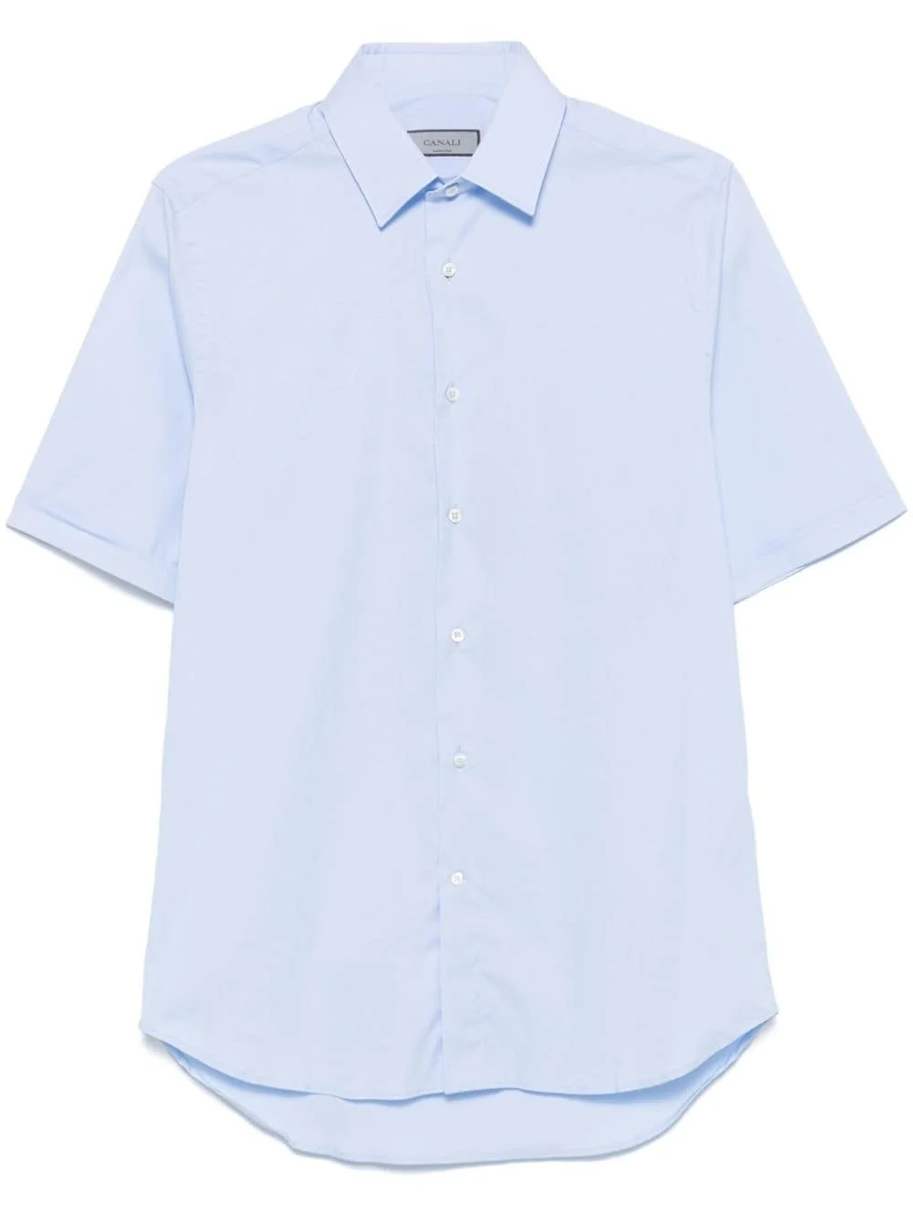 short-sleeves shirt Highlights - Blue - Cotton blend - Poplin texture - Front button fastening - Classic collar - Short sleeves - Curved hem Made in Italy Composition Cotton 79%, Polyamide 17%, Elastane 4% SIZE & FIT FittingInformation Designed for a slim fit, offering a comfortable fit that sits just away from the body The dart stitching adds structure and a closer fit in the torso of this piece Made from a midweight stretch fabric, this piece offers elasticity and flexibility when worn