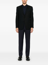 single-breasted blazer Highlights - Black - Wool blend - Interwoven design - Front button fastening - Notched lapels - Shoulder pads - Long sleeves - Buttoned cuffs - Chest welt pocket - Dart detailing - Two side flap pockets - English rear vents - Multiple internal slip pockets - Full lining - Straight hem Made in Italy Composition Lining: Cupro 100% Outer: Wool 99%, Elastane 1% SIZE & FIT Model measurements Height 6 ft 1 in(1.85 m) Bust/Chest 35.82 in(91 cm) Hips 37.79 in(96 cm) Waist 29.13 in(74 cm) FittingInformation Designed for a slim fit, offering a comfortable fit that sits just away from the body The vented hem offers movement at the rear Made from a midweight fabric Washing instructions Dry Clean Only