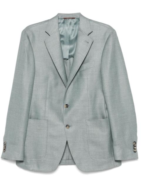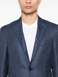 single-breasted blazer Highlights - Indigo blue - Front button fastening - Chest welt pocket - Two side patch pockets - Buttoned-cuff sleeves Made in Italy Composition Outer: Wool 65%, Silk 21%, Linen/Flax 14% Lining: Cupro 100% SIZE & FIT Model measurements Height 6 ft 1 in(1.85 m) Bust/Chest 35.82 in(91 cm) Hips 37.79 in(96 cm) Waist 29.13 in(74 cm) FittingInformation Designed for a slim fit, offering a comfortable fit that sits just away from the body The vented hem offers movement at the rear Made from a midweight non-stretch fabric Washing instructions Dry Clean Only