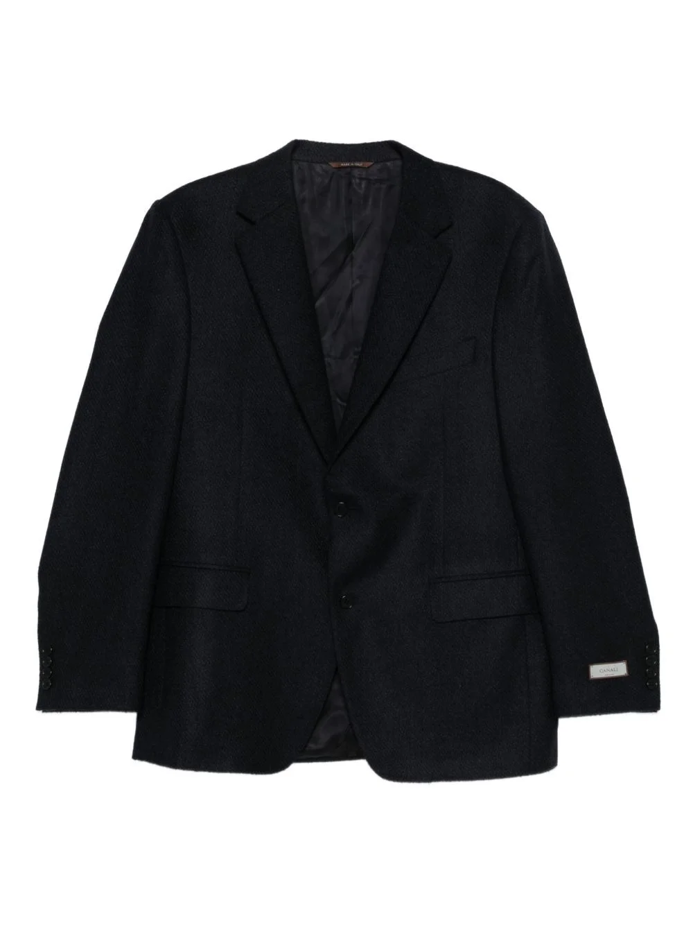 single-breasted blazer Highlights - Dark blue - Single-breasted - Button fastening - Notched lapel - Flap pockets Made in Italy Composition Outer: Wool 86%, Polyester 14% Lining: Cupro 100% Washing instructions Dry Clean Only