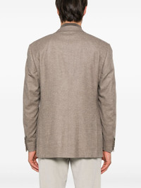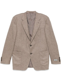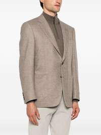 single-breasted blazer Highlights - Light brown - Wool-cashmere blend - Knitted construction - Front button fastening - Notched lapels - Long sleeves - Buttoned cuffs - Chest welt pocket - Two front patch pockets - English rear vents - Full lining Made in Italy Composition Outer: Wool 93%, Cashmere 7% Lining: Cupro 100% SIZE & FIT Model measurements Height 6 ft 2 in(1.87 m) Bust/Chest 37.79 in(96 cm) Hips 37.79 in(96 cm) Waist 30.31 in(77 cm) FittingInformation Designed for a slim fit, offering a comfortable fit that sits just away from the body The vented hem offers movement at the rear Made from a midweight non-stretch fabric