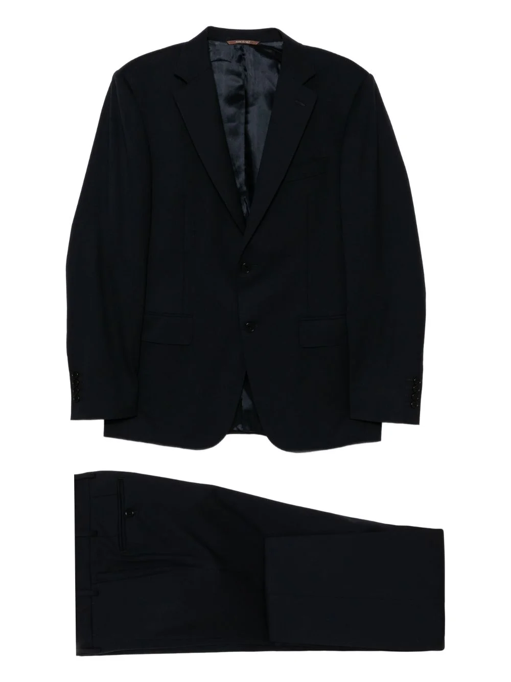 single-breasted suit Highlights - Dark blue - Front button fastening - Two front flap pockets - Concealed front button and zip fastening - Two rear button-fastening jetted pockets Made in Italy Composition Wool 97%, Elastane 3% SIZE & FIT Model measurements Height 6 ft 2 in(1.87 m) Bust/Chest 33.07 in(84 cm) Hips 35.43 in(90 cm) Waist 26.77 in(68 cm) FittingInformation Tailored for a regular fit, offering a comfortable loose fit throughout the body The unfinished hems allow for the length to be altered Made from a midweight stretch fabric, this piece offers elasticity and flexibility when worn Washing instructions Dry Clean Only