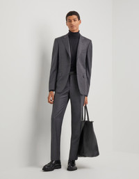 The epitome of authentic and timeless elegance, this suit combines the comfort of a regular fit with a refined colour scheme. Made up of a single-breasted jacket and flat front pants, it is designed for gentlemen in search of a refined yet distinctive style. FABRICS AND CRAFTSMANSHIP - Single-breasted two-button jacket - Slash pockets with flaps and a slash breast pocket - Jacket length: 75 cm in size 50 - Flat front pants - Slanted pockets and two rear welt pockets - Hem width: 19.5 cm - 100% wool - Made in Italy CARE - Do not wash with water - Do not bleach - Normal steam or dry iron on low (150°) - Dry clean with perchlorethylene - Do not tumble dry FIT Regular fit - Drop 6 The contemporary Venezia jacket is designed in a regular length with well-defined shoulders, light shoulder pads, and standard lapels. The soft pants feature a mid-rise waist and regular cuffs. The model is wearing a size 48 The model measures: Height: 188 cm Chest: 94 cm Waist: 75 cm Hips: 93 cm