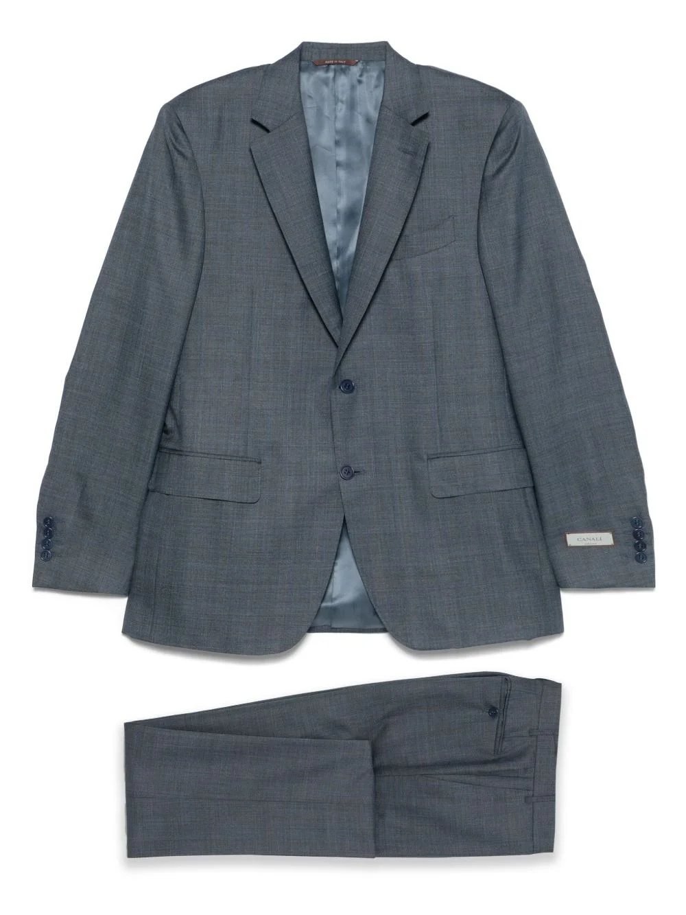 single-breasted suit Highlights - Blue - Front button fastening - Long sleeves - Two side flap pockets - Hook and zip fly fastening - Slip pockets to the sides - Two rear welt pockets Made in Italy Composition Lining: Cupro 100% Outer: Wool 85%, Silk 15% SIZE & FIT Model measurements Height 6 ft 2 in(1.88 m) Bust/Chest 37.4 in(95 cm) Hips 38.58 in(98 cm) Waist 31.1 in(79 cm) FittingInformation Tailored for a slim fit, offering a comfortable fit that sits just away from the body The unfinished hems allow for the length to be altered Made from a midweight non-stretch fabric