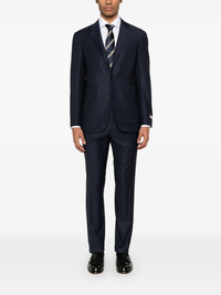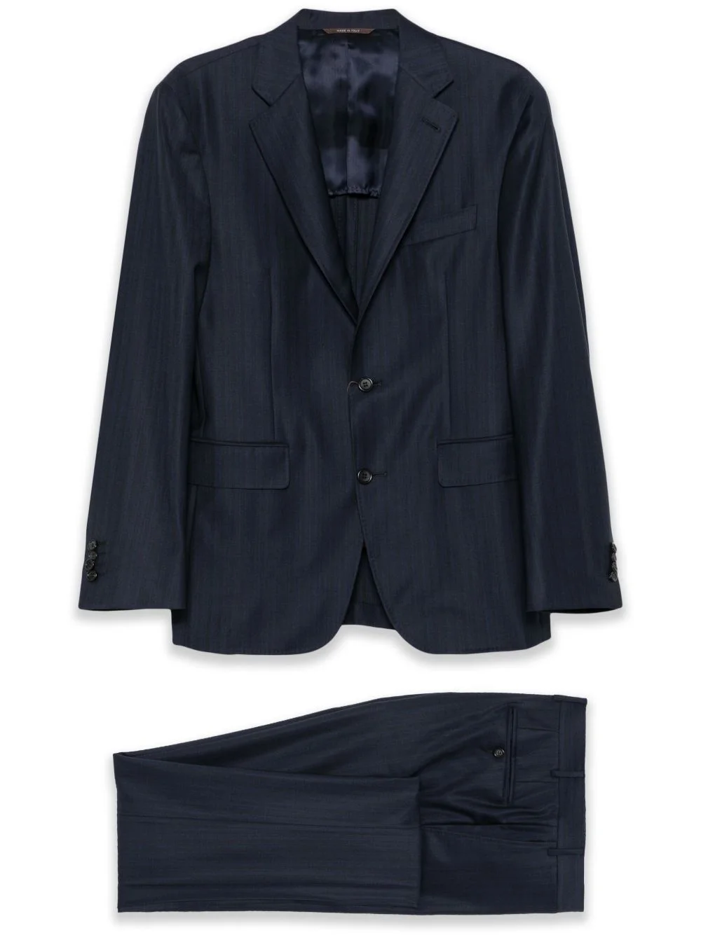 single-breasted suit Highlights - Midnight blue - Front button fastening - Concealed fly and button fastening - Buttoned cuffs - English rear vents Made in Italy Composition Outer: Wool 100% Lining: Cupro 100% SIZE & FIT Model measurements Height 6 ft 2 in(1.89 m) Bust/Chest 35.03 in(89 cm) Hips 38.18 in(97 cm) Waist 29.92 in(76 cm) FittingInformation Tailored for a slim fit, offering a comfortable fit that sits just away from the body The unfinished hems allow for the length to be altered Made from a midweight non-stretch fabric