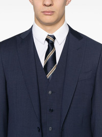 single-breasted suit (three pieces) Highlights - Navy blue - Front button fastening - Concealed fly and button fastening - English rear vents - Buttoned-cuff sleeves Made in Italy Composition Outer: Wool 100% Lining: Cupro 100% SIZE & FIT Model measurements Height 6 ft 1 in(1.86 m) Bust/Chest 36.61 in(93 cm) Hips 37 in(94 cm) Waist 28.74 in(73 cm) FittingInformation Tailored for a slim fit, offering a comfortable fit that sits just away from the body The unfinished hems allow for the length to be altered Made from a midweight non-stretch fabric