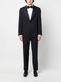 single-breasted two-piece suit Highlights - Midnight blue - Wool-mohair blend - Blazer: - Classic lapels - Front button fastening - Long sleeves - Chest welt pocket - Two front welt pockets - Trousers: - Belt loops - Concealed front fastening - Two side inset pockets - Two rear welt pockets Made in Italy Composition Outer: Wool 84%, Mohair 16% Lining: Cupro 100% Washing instructions Dry Clean Only