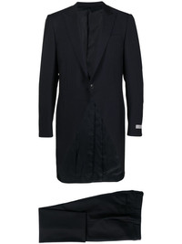 single-breasted wool-mohair suit Highlights - Navy blue - Wool-mohair blend - Jacket: - Peak lapels - Logo patch at the sleeve - Front button fastening - Long sleeves - Buttoned cuffs - Asymmetric hem - Chest welt pocket - Central rear vent - Thigh-length - Trousers: - Belt loops - Pressed crease - Off-centre front fastening - Tailored cut - Two side slit pockets - Two rear welt pockets Imported Composition Outer: Wool 84%, Mohair 16% Lining: Cupro 100% SIZE & FIT Model measurements Height 6 ft 1 in(1.85 m) Bust/Chest 35.82 in(91 cm) Hips 37.79 in(96 cm) Waist 29.13 in(74 cm) FittingInformation Tailored for a slim fit, offering a comfortable fit that sits just away from the body The unfinished hems allow for the length to be altered Made from a midweight non-stretch fabric This piece fits true to size – take your usual size Washing instructions Dry Clean Only