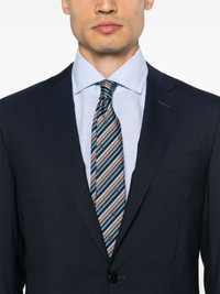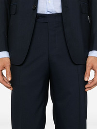 single-breasted wool suit Highlights - Midnight blue - Wool - Blazer: - Notched lapels - Shoulder pads - Chest welt pocket - Long sleeves with faux buttoned cuffs - Logo tag to the cuff - Dart detailing - Two side flap pockets - English rear vents - Multiple internal slip pockets - Full lining - Straight hem - Front button fastening - Trousers: - Belt loops - Two side slash pockets - Pressed crease - Full-length - Two rear button-fastening jetted pockets - Slim cut - Front concealed zip-fly and button fastening Made in Italy Composition Lining: Cupro 100% Outer: Wool 100% SIZE & FIT Model measurements Height 6 ft 1 in(1.86 m) Bust/Chest 37.4 in(95 cm) Hips 36.22 in(92 cm) Waist 29.52 in(75 cm) FittingInformation Tailored for a slim fit, offering a comfortable fit that sits just away from the body The unfinished hems allow for the length to be altered Made from a midweight non-stretch fabric This piece fits true to size – take your usual size Washing instructions Dry Clean Only