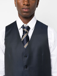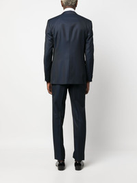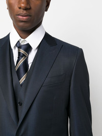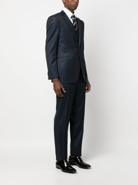 single-breasted wool suit Highlights - Navy blue - Wool - Three-piece design - Jacket: - Peak lapels - Front button fastening - Long sleeves - Buttoned cuffs - Jetted chest pocket - Two front flap pockets - Straight hem - English rear vents - Waiscoat: - V-neck - Front button fastening - Sleeveless - Trousers: - Slim cut - Pressed crease - Belt loops - Two side inset pockets - Two rear welt pockets Made in Italy Composition Lining: Cupro 100% Outer: Wool 100% SIZE & FIT Model measurements Height 6 ft 0 in(1.84 m) Bust/Chest 34.64 in(88 cm) Hips 35.03 in(89 cm) Waist 27.95 in(71 cm) Washing instructions Dry Clean Only