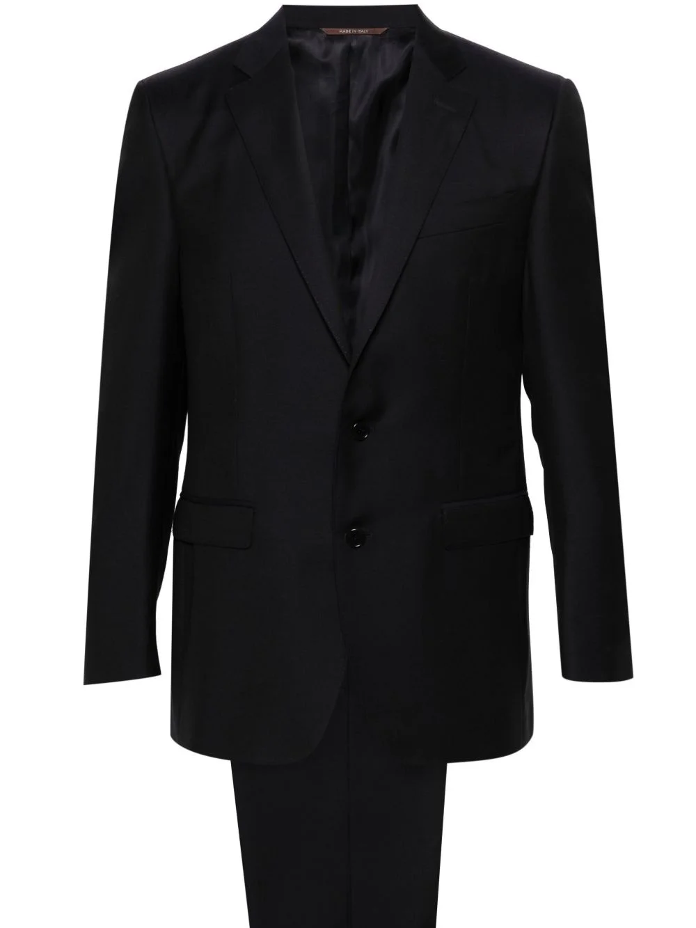 single-breasted wool suit Highlights - Navy blue - Wool - Twill weave Made in Italy Composition Outer: Wool 100% Lining: Cupro 100% SIZE & FIT Model measurements Height 6 ft 1 in(1.86 m) Bust/Chest 37.4 in(95 cm) Hips 36.22 in(92 cm) Waist 29.52 in(75 cm) FittingInformation Tailored for a slim fit, offering a comfortable fit that sits just away from the body The unfinished hems allow for the length to be altered Made from a midweight non-stretch fabric This piece fits true to size β take your usual size