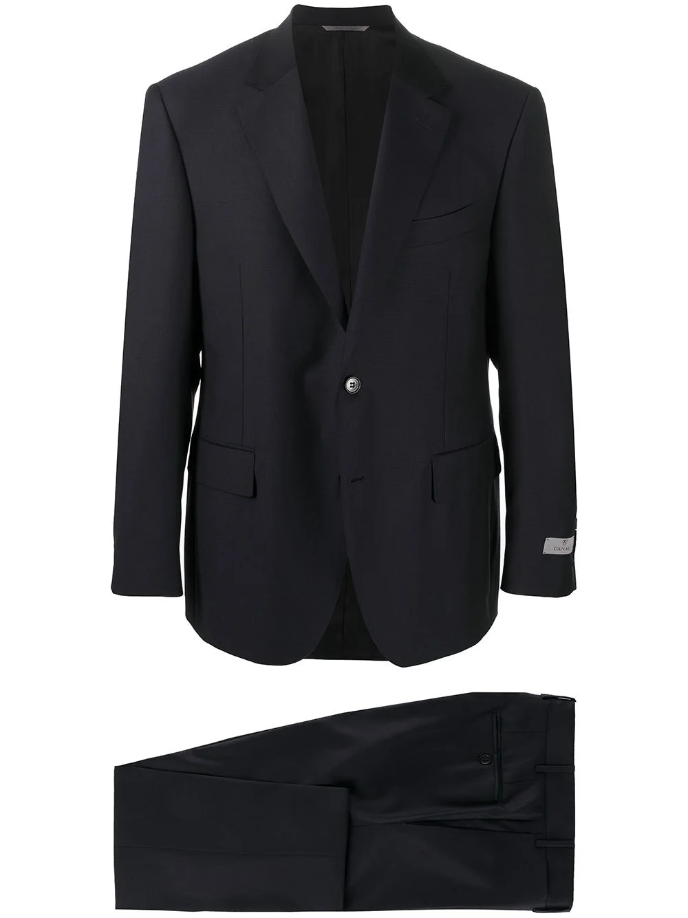 single-breasted wool suit dark blue wool full lining notched lapels long sleeves two front flap pockets chest welt pocket front button fastening straight leg two rear welt pockets belt loops Made in Italy Composition Lining: Cupro 100% Outer: Wool 100% SIZE & FIT Model measurements Height 6 ft 1 in(1.85 m) Bust/Chest 37.79 in(96 cm) Hips 37.4 in(95 cm) Waist 30.7 in(78 cm)