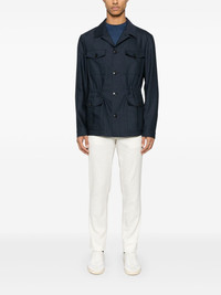 tapered trousers Highlights - Light beige - Front button and zip fastening - Two side slash pockets - Two rear button-fastening jetted pockets Made in Italy Composition Outer: Lyocell 66%, Cotton 31%, Elastane 3% Lining: Cotton 100% SIZE & FIT Model measurements Height 6 ft 2 in(1.87 m) Bust/Chest 38.18 in(97 cm) Hips 36.61 in(93 cm) Waist 29.13 in(74 cm) FittingInformation Designed for a tapered leg, offering a loose unrestricted fit over the leg with a closer fit towards the ankle Made from a midweight non-stretch fabric