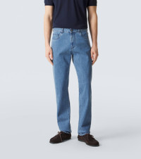 Perfect for everyday wear, these jeans from Canali boast versatility and streamlined design. The style is designed with a slim silhouette and a 5-pocket construction. Product Details - Material: 98% cotton, 2% elastane - Care instructions: machine wash at 30 degrees - Made in Italy - Color: blue - Designer color name: 306 - Details: 100% calf leather - Pocket lining: 65% polyester, 35% cotton - Closure: zipper fly, button fastening - Pockets: five pockets - Belt loops - Contains non-textile parts of animal origin - Item number: P01137126 Size & Fit - True to size - Slightly stretchy fabric - Slim-leg - Mid-rise - Height of model is 189cm-74.5" and wears a size 50