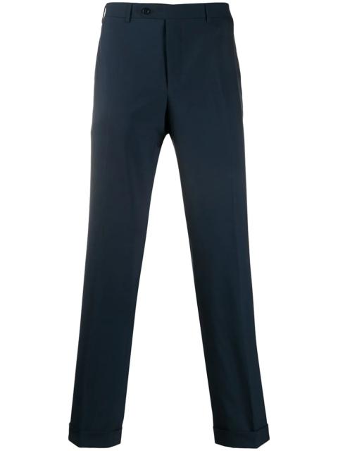 slim tailored trousers Blue wool slim tailored trousers from Canali featuring a waistband with belt loops, a button and zip fly, side slit pockets, two back buttoned welt pockets, a straight leg, creases and turn up hems. Made in Italy Composition Wool 100% SIZE & FIT Model measurements Height 6 ft 2 in(1.87 m) Bust/Chest 38.18 in(97 cm) Hips 36.61 in(93 cm) Waist 29.13 in(74 cm) FittingInformation This piece fits true to size. We recommend you get your regular size Cut for a slim fit Made with a mid-weight non-stretch fabric Washing instructions Dry Clean Only