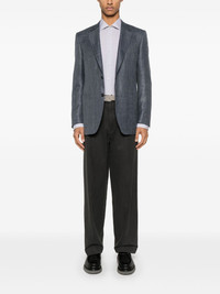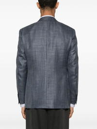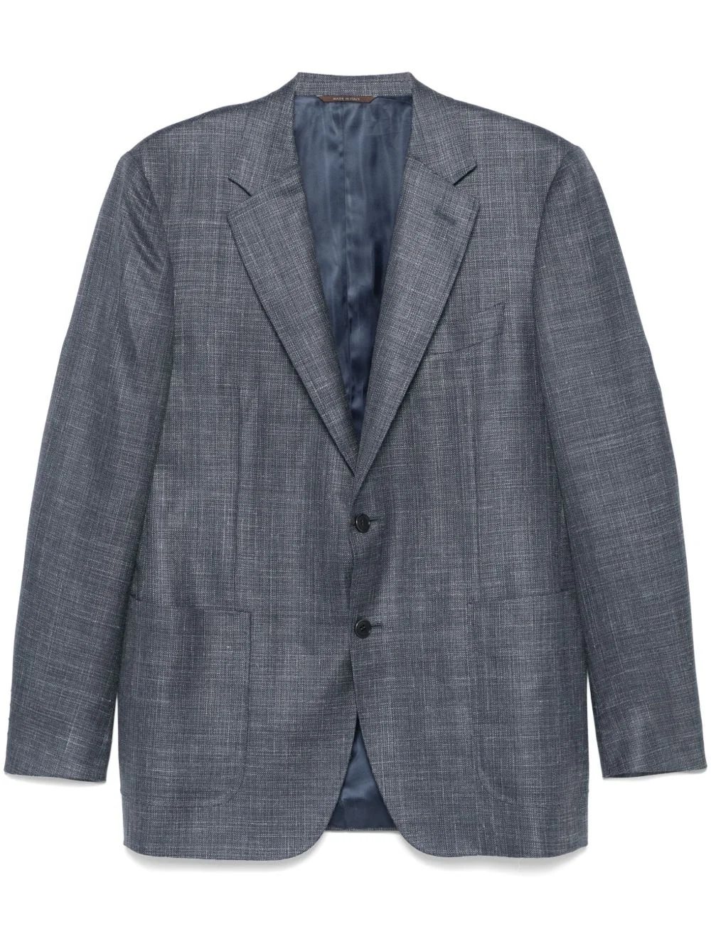 slub-texture blazer Highlights - Indigo blue - Front button fastening - Chest welt pocket - Two side patch pockets - English rear vents Made in Italy Composition Outer: Wool 68%, Silk 20%, Linen/Flax 12% Lining: Cupro 100% SIZE & FIT Model measurements Height 6 ft 2 in(1.87 m) Bust/Chest 38.18 in(97 cm) Hips 36.61 in(93 cm) Waist 29.13 in(74 cm) FittingInformation Designed for a slim fit, offering a comfortable fit that sits just away from the body The vented hem offers movement at the rear Made from a midweight non-stretch fabric