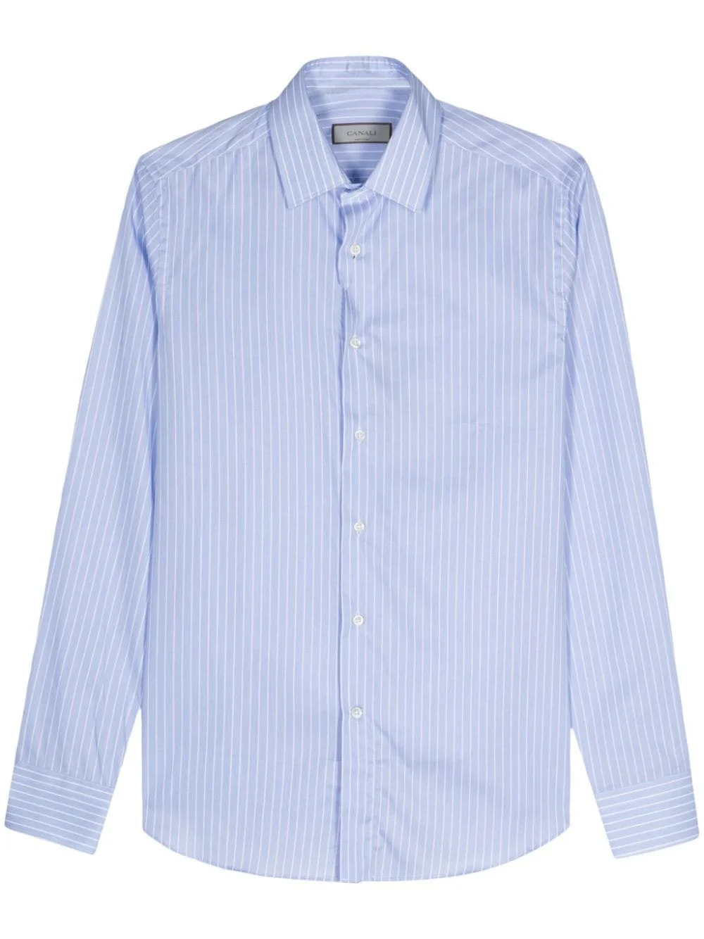 stripe-pattern cotton shirt Highlights - Light blue/white - Cotton - Vertical stripe pattern - Classic collar - Long sleeves with buttoned cuffs - Curved hem - Front button fastening Made in Italy Composition Cotton 100%