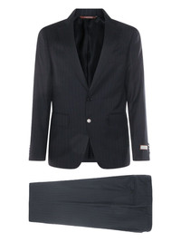 stripe-pattern wool suit Highlights - Blue - Stripe pattern - Single breasted - Button fastening - Flap pockets - Welt pocket Made in Italy Composition Wool 100% Washing instructions Read Manufacturer Guidelines