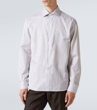 The Canali striped cotton-blend shirt offers a refined take on classic tailoring. Crafted from a soft, breathable cotton blend, the design combines sophisticated stripes with a comfortable fit, perfect for elevating both casual and formal looks. Product Details - Material: 80% cotton, 18% polyamide, 2% elastane - Care instructions: machine wash at 30 degrees - Made in Italy - Designer color name: 501 Multicolor - Item color: multicolor - Closure: buttoned front - Item number: P01001148 Size & Fit - True to size - Without pleats in the back - Slim fit - Non-stretchy fabric - Falls below the hip - Height of model is 189cm-74.5" and wears a size EU 41