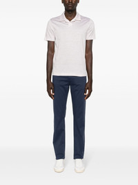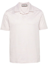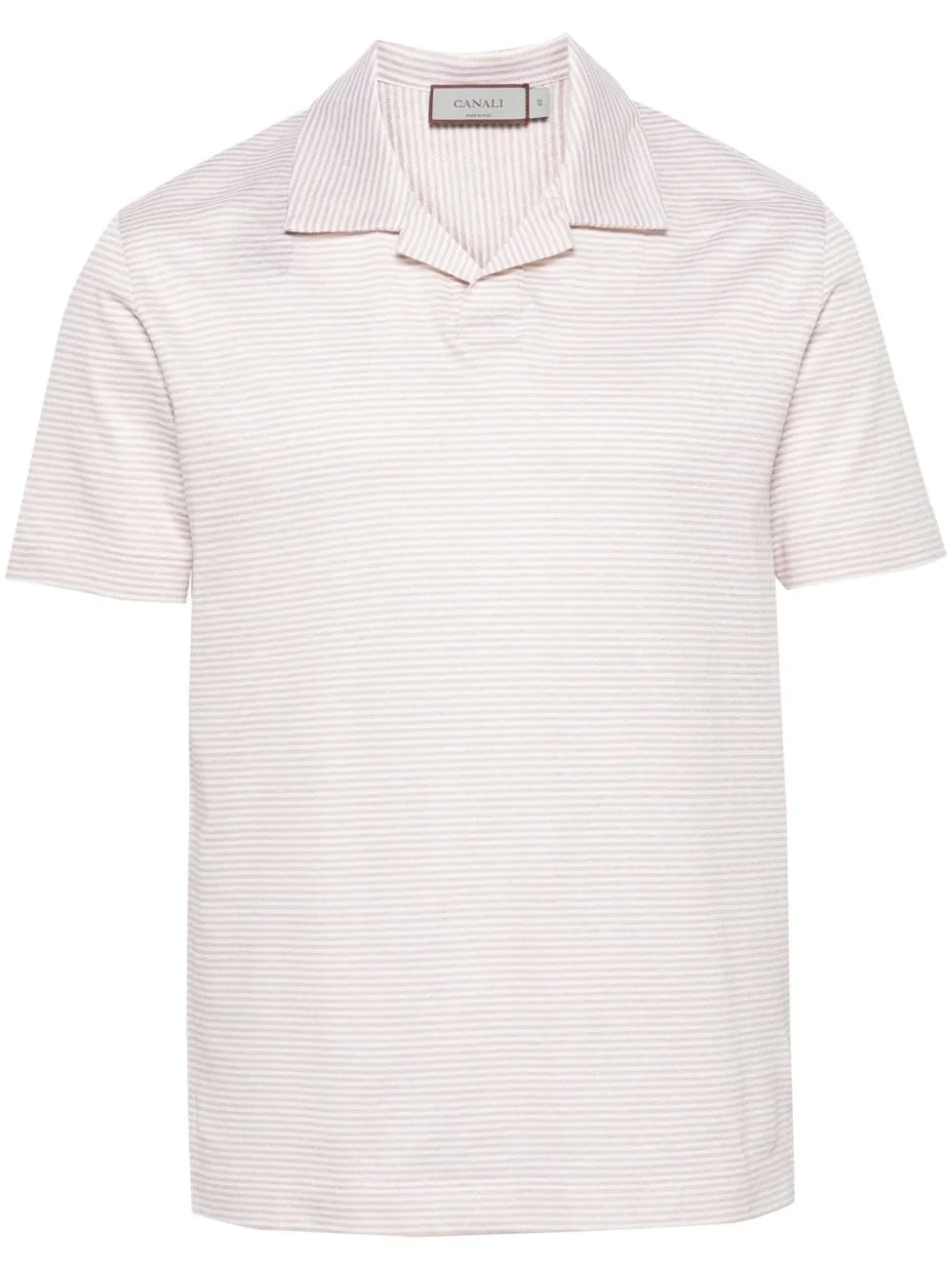 striped linen blend polo shirt Highlights - White/sand beige - Linen-cotton blend - Horizontal stripe pattern - Patch detail - Polo collar - Short sleeves - Short side slits - Straight hem Made in Italy Composition Linen/Flax 50%, Cotton 50% SIZE & FIT Model measurements Height 6 ft 2 in(1.87 m) Bust/Chest 36.41 in(92.5 cm) Hips 37 in(94 cm) Waist 29.52 in(75 cm) FittingInformation Designed for a slim fit, this polo shirt offers a comfortable fit that sits just away from the body Made from a midweight non-stretch fabric, this piece offers minimal elasticity when worn This piece fits true to size – take your usual size