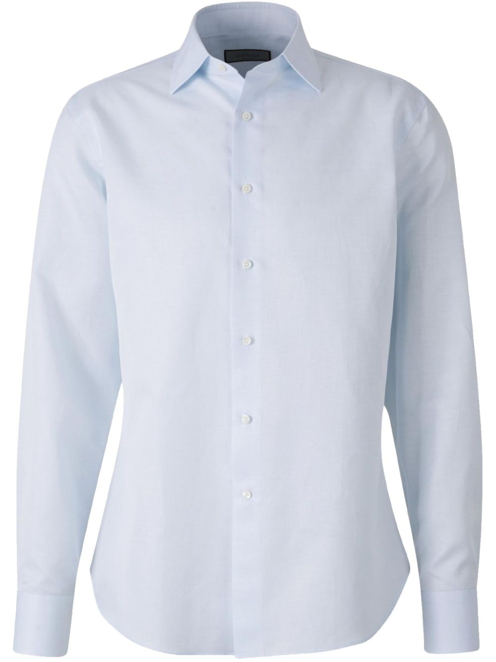 spread-collar shirt Highlights - Light blue - Front button fastening - Buttoned-cuff sleeves - Curved hem Made in Italy Composition Mother of Pearl 100%, Cotton 67%, Linen/Flax 33%