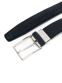 suede belt Highlights - Navy blue - Pin-buckle fastening - Punched holes - Adjustable fit Made in Italy Composition Calf Leather 100%, Calf Suede 100% SIZE & FIT Measurement Minimum Length 36.22 in(92 cm) TOTAL LENGTH 40.15 in(102 cm) WIDTH 1.37 in(3.5 cm)
